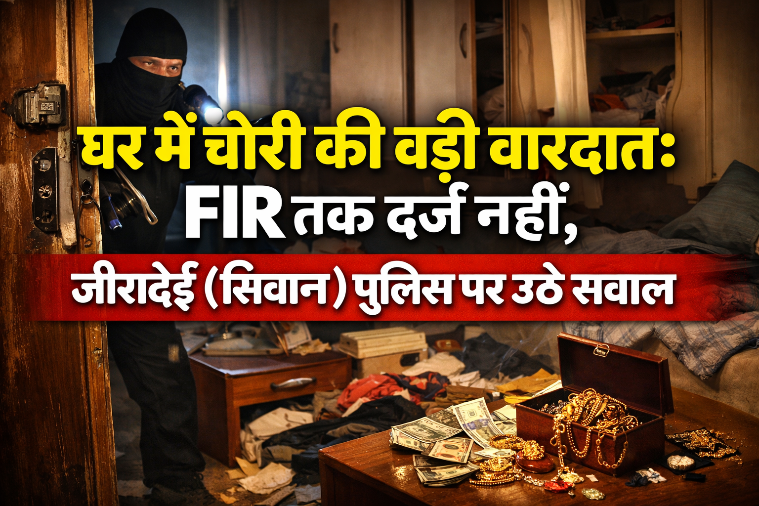 View Allजीरादेई (सिवान): घर में चोरी की बड़ी वारदात; चार लाख के गहने-नगदी पार, FIR तक दर्ज नहीं, पुलिस पर उठे सवाल ?