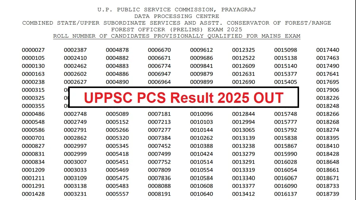 उत्तर प्रदेश लोक सेवा आयोग (UPPSC) की ओर से राज्य सम्मिलित राज्य/ प्रवर अधीनस्थ सेवा (प्रारंभिक) परीक्षा 2025 का रिजल्ट (UP PCS Prelims Result) घोषित कर दिया गया है। परिणाम ऑनलाइन माध्यम से पीडीएफ फॉर्मेट में ऑफिशियल वेबसाइट uppsc.up.nic पर जारी हुआ है। प्रारंभिक परीक्षा में भाग लेने वाले अभ्यर्थी तुरंत ही साइट पर जाकर या इस पेज पर दिए डायरेक्ट लिंक से मेरिट लिस्ट डाउनलोड कर सकते हैं। Merit List में सफल अभ्यर्थियों के रोल नंबर दर्ज हैं।