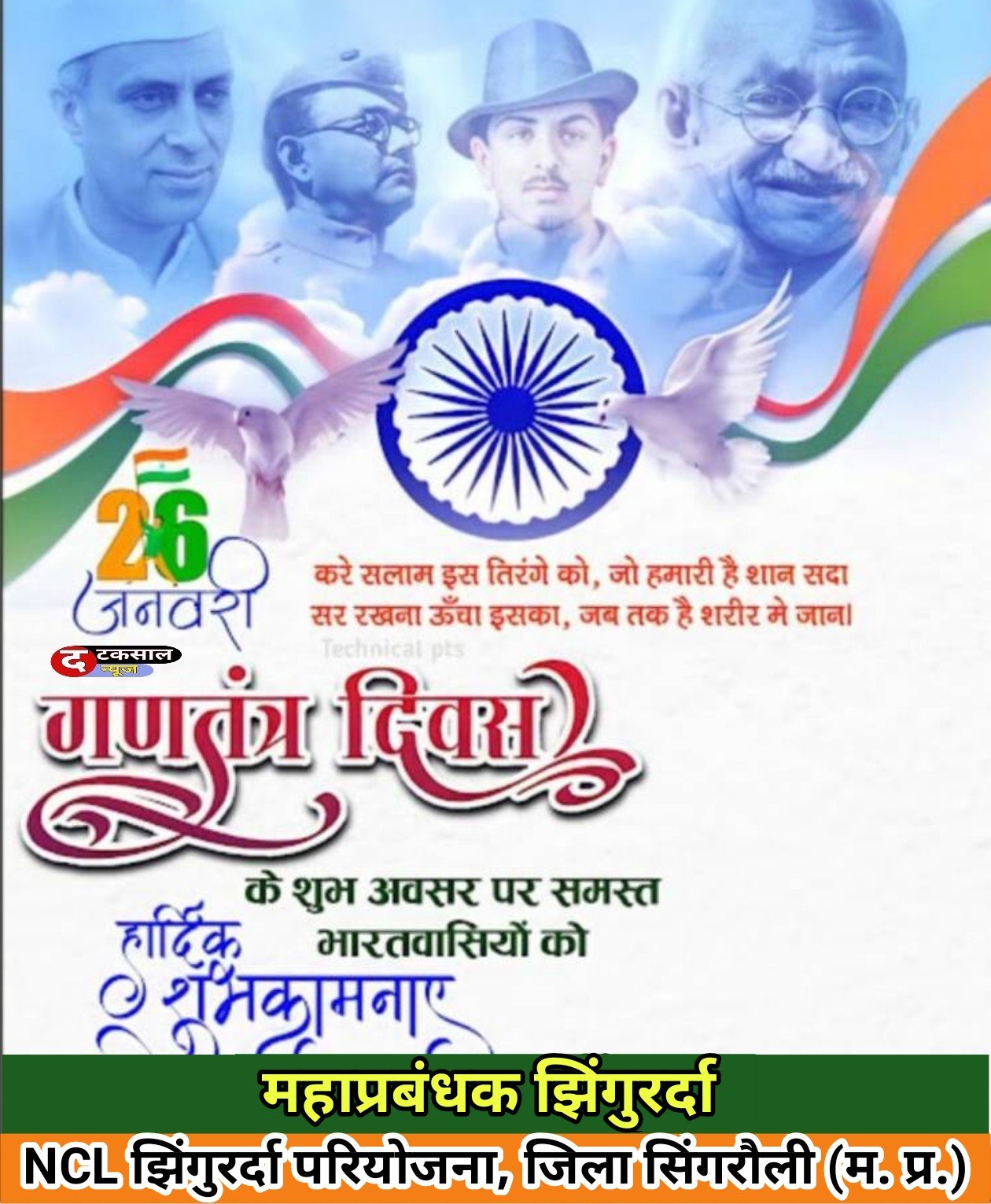 Homeसिंगरौली: 77वें गणतंत्र दिवस 2026 की हार्दिक शुभकामनाएं… सिंगरौली: 77वें गणतंत्र दिवस 2026 की हार्दिक शुभकामनाएं… January 26, 2026February 23, 2026विकास कुमार सिंह (संपादक) 3.2kViews 1001 Shares सिंगरौली 77वें गणतंत्र दिवस 2026 की हार्दिक शुभकामनाएं… विकास कुमार सिंह (संपादक)