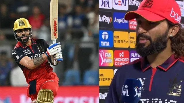 Rajat Patidar on Virat Kohli Fitness: आईपीएल के 20वें मैच में आरसीबी ने एमआई को 18 रन से मात दी। इस जीत के साथ बेंगलुरु टीम ने इस सीजन में अपनी तीसरी जीत दर्ज की और अंक तालिका में तीसरे पायदान पर है। टॉस मुंबई इंडियंस के कप्तान ने जीता था और उन्होंने पहले गेंदबाजी का फैसला किया था।