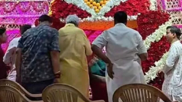 ठाकुर बांकेबिहारी मंदिर में गुरुवार को सुबह राजभोग सेवा बालकृष्ण गोस्वामी की थी। लेकिन, मंदिर में सेवायत मनोज गोस्वामी के यजमानों ने फूलबंगला सेवा अर्पित की। फूलबंगला सेवा अर्पित करने वाले श्रद्धालु जगमोहन में गद्दी पूजन के लिए पहुंचे तो सेवायत ने ठाकुरजी के सिंहासन के आगे कुर्सियां बिछाकर उन्हें बिठाया।