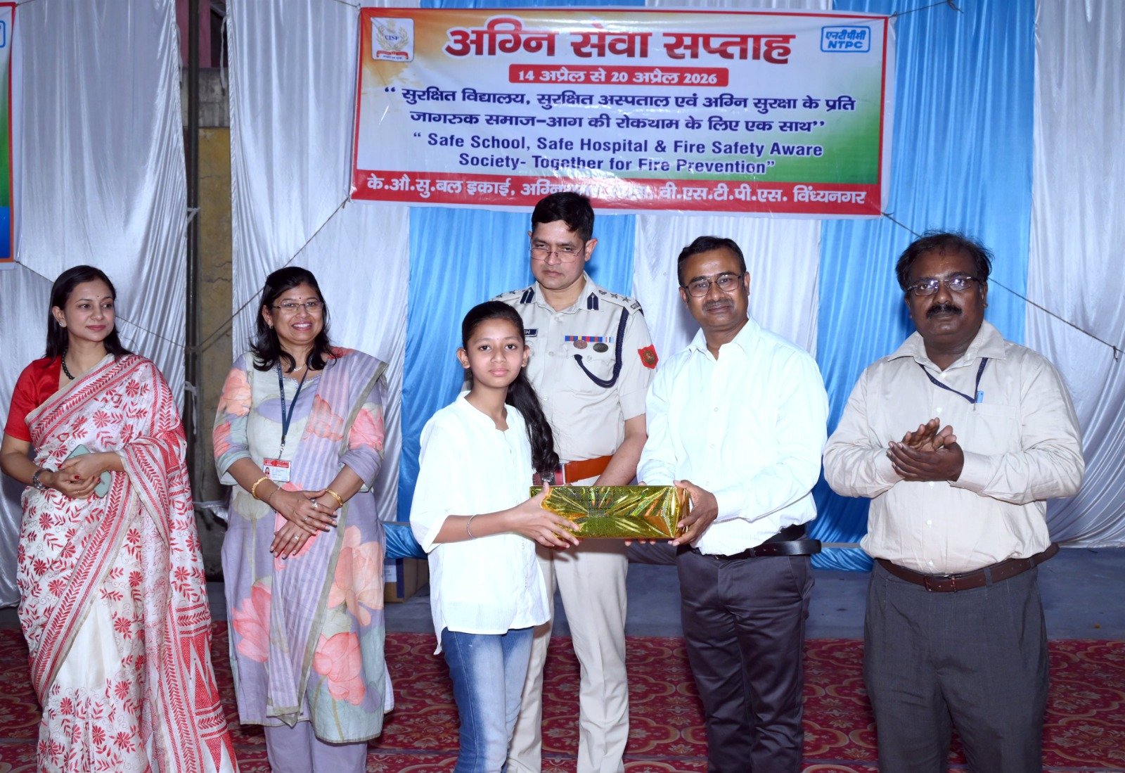 समापन समारोह में एनटीपीसी विंध्यनगर के एच.ओ.पी श्री संजीब कुमार साहा, सीआईएसएफ इकाई के वरिष्ठ कमांडेंट श्री मनीष कुमार राय, एजीएम सेफ्टी श्री ए. के. अग्रवाल एवं डीसी/फायर श्री सदा राम यादव विशेष रूप से उपस्थित रहे। इस अवसर पर विभिन्न प्रतियोगिताओं के विजेताओं को उनके उत्कृष्ट प्रदर्शन के लिए पुरस्कार देकर सम्मानित किया गया।