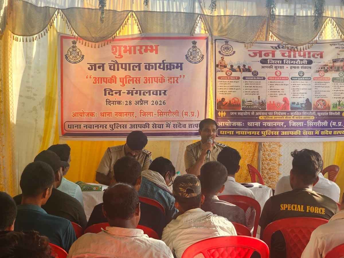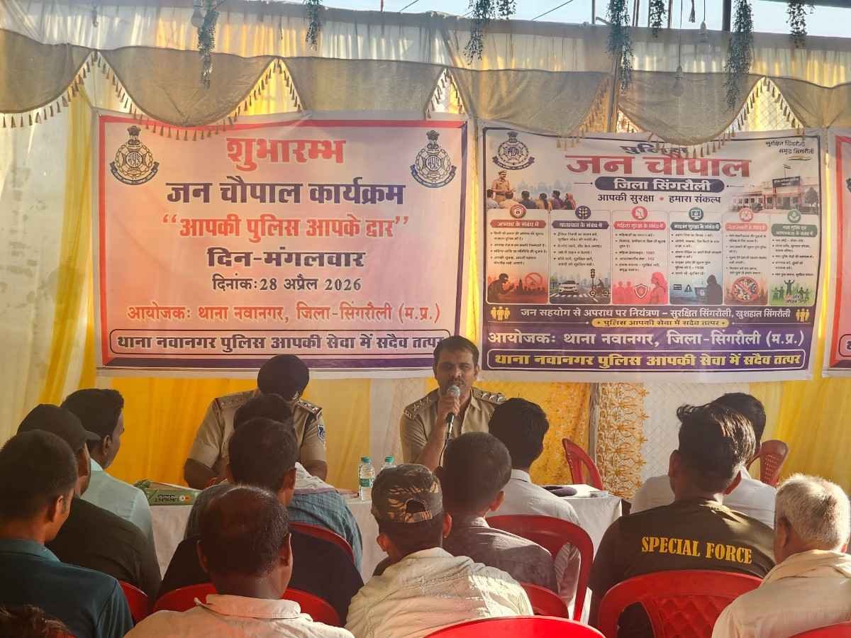 सिंगरौली। पुलिस मुख्यालय भोपाल द्वारा जारी निर्देश के बाद पुलिस अधीक्षक सिंगरौली मनीष खत्री के निर्देशन में जिले के अलग अलग थानों में जन चौपाल कार्यक्रम का आयोजन किया जा रहा है इसी क्रम में नवानगर थाना क्षेत्र में मंगलवार शाम करीब 5:00 बजे निगाही मोड़ के पास पुलिस द्वारा जन चौपाल कार्यक्रम का आयोजन किया गया। इस कार्यक्रम का उद्देश्य आमजन को विभिन्न सुरक्षा विषयों के प्रति जागरूक करना और उनकी समस्याओं का मौके पर समाधान करना था।